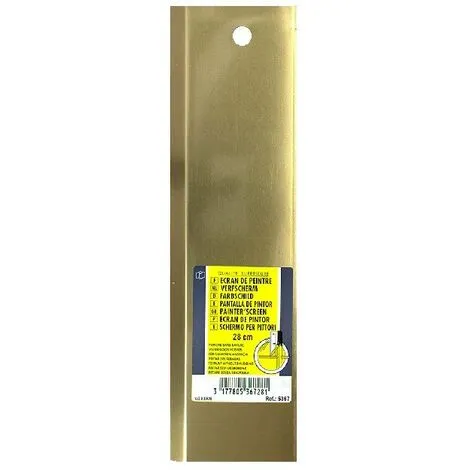 Lame acier vernis avec trou de suspension. Un bord roulé pour prise en main, un bord plié.