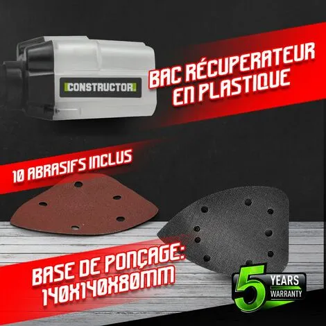 Ponceuse triangulaire idéale pour le ponçage des petites surfaces jusque dans les moindres recoins .